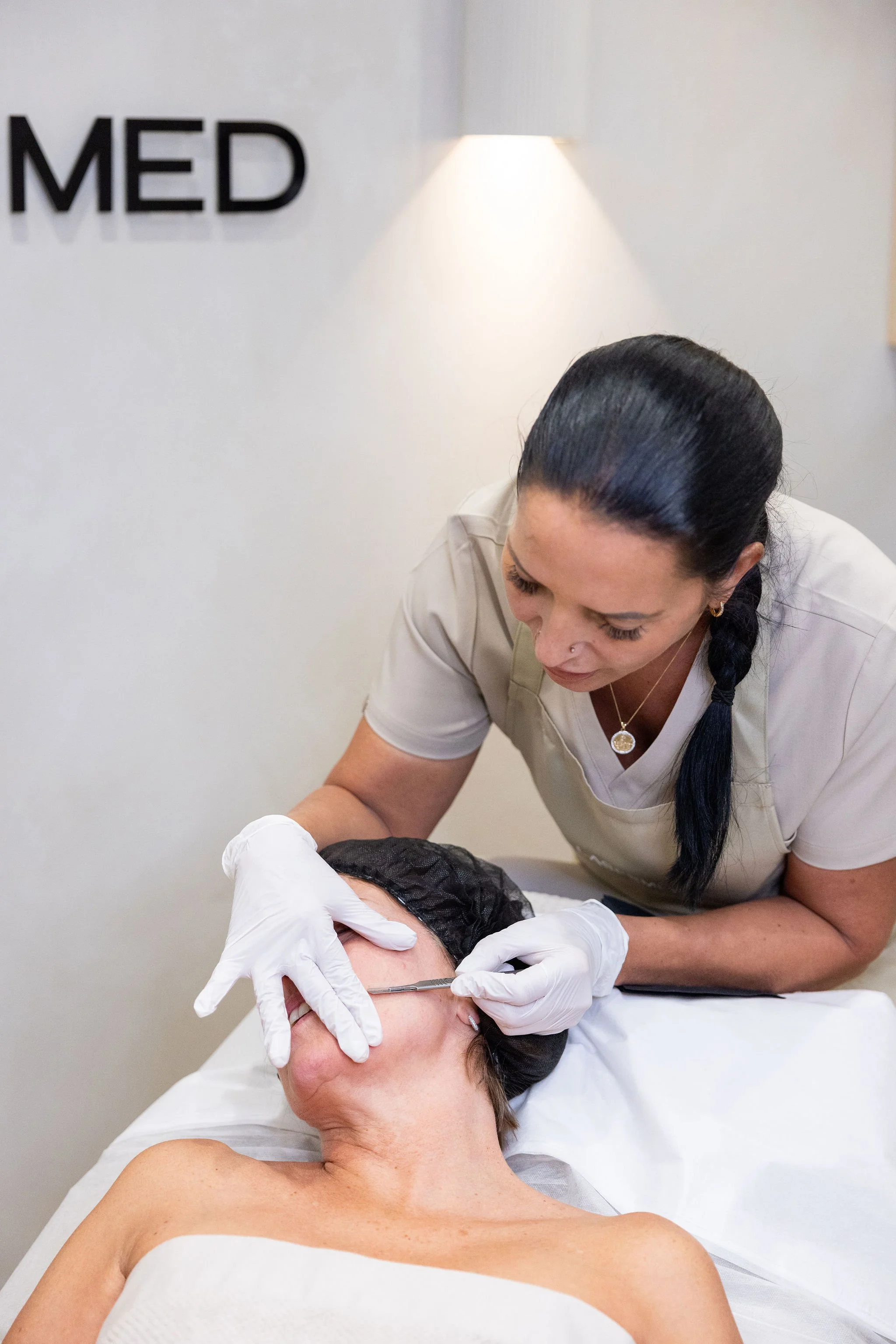 Dermaplaning is a gentle, non-invasive exfoliation treatment that removes dead skin cells and fine vellus hair (peach fuzz) to reveal smoother, brighter skin. It enhances product absorption, promotes a more even skin tone, and is the perfect facial before an event or as an add-on to other treatments for boosted results and a radiant glow.