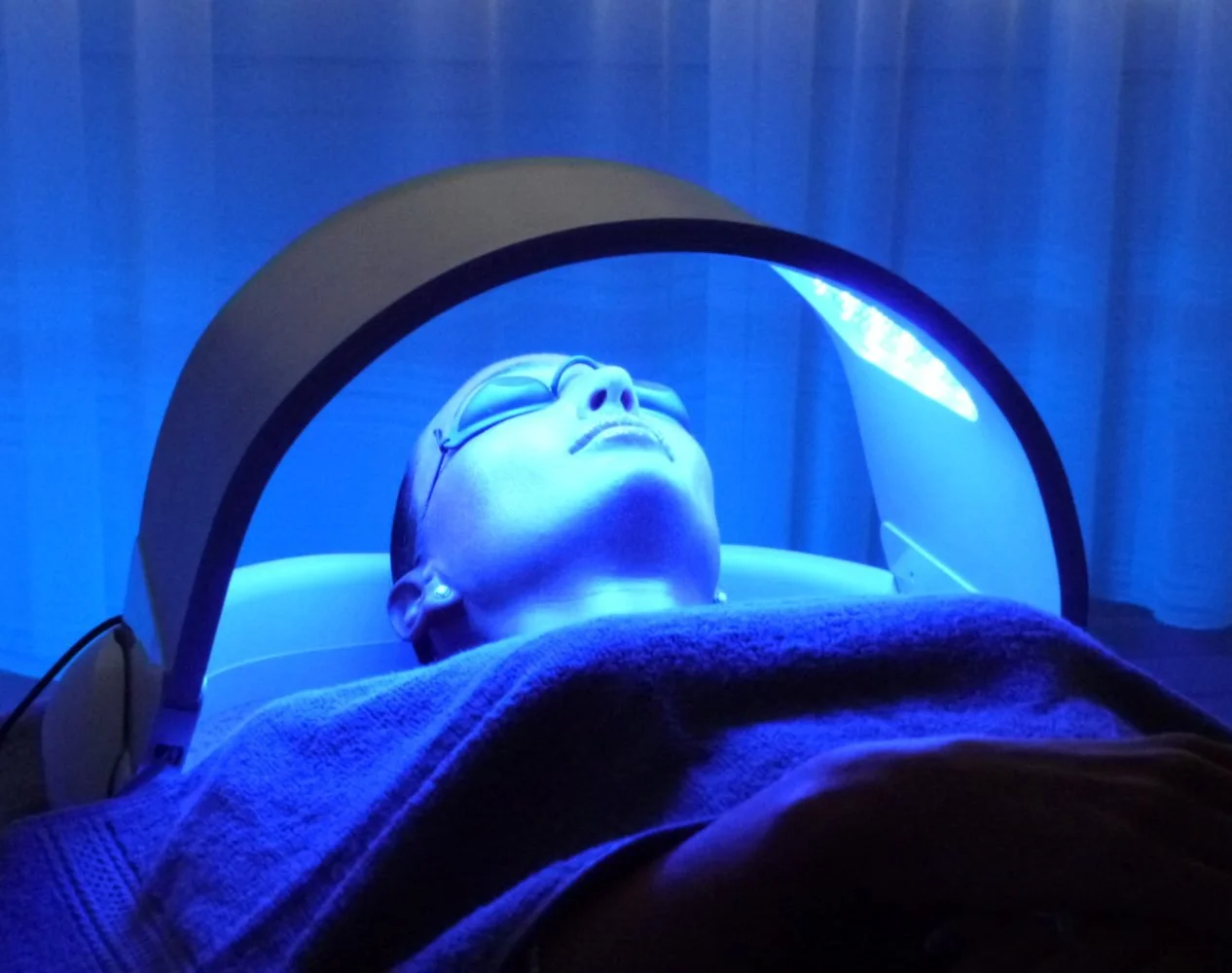 After putting on your goggles, lie on your back as your healthcare provider places the LED light therapy device above your face. Lie still during the entire treatment as the device works. The treatment usually lasts about 20 minutes.